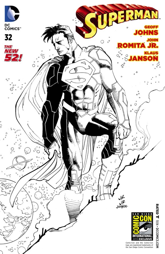 DC legend Geoff Johns is back at the helm at the head of the Superman series. New characters and new adventures await Supes in a brand new story arc. This variant is designed by another legend, John Romita Jr.