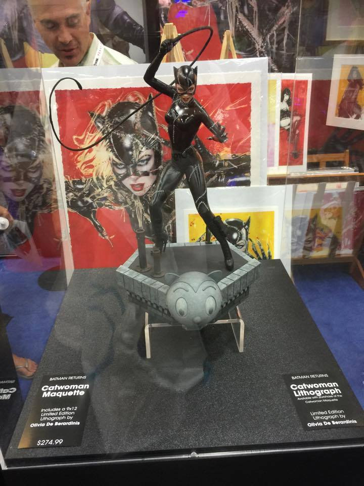 They have a Catwoman maquette that will go on preorder in December. The maquette will come with a Catwoman lithograph (yellow) from Olivia De Berardinis that will be free with purchase. Collectors can purchase (multiples if they are so inclined) different red lithographs (also from Olivia De Berardinis). The red lithograph comes in 3 different sizes.