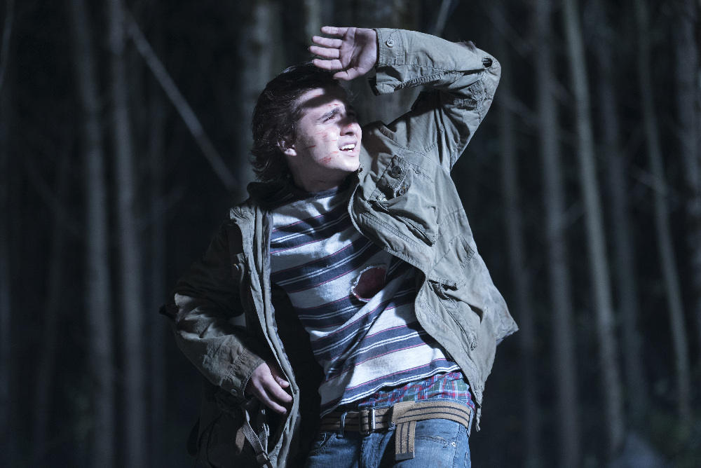 Kevin, who is clearly shaken meets Holden at a bar. He has a gun with him, so at this point, I am almost certain this is going to end badly. Kevin tries to tell Holden about the people that are after him. Holden freaks out and immediately feels sick. He says he needs to get some air and heads outside, with Kevin right on his heels. They are attacked as soon as they get out to the parking lot by the man in the horrific yellow jacket (no I will not let that go) and a couple of goons. The man tells Holden that he knows who he is, and he knows what Holden can do. He wants Holden to show him. The other man takes Kevin’s gun away from him and points it at his head. Holden is told to stop the bullet. Completely distressed and afraid Holden sends the men flying through the air, confirming what we all thought, his powers are emotional responses. Out of the blue, a dark SUV speeds into the frame being driven by the girl from the store. The man with the horrific yellow jacket starts shooting at the car as the girl yells for Holden to get into the car. They speed off.
