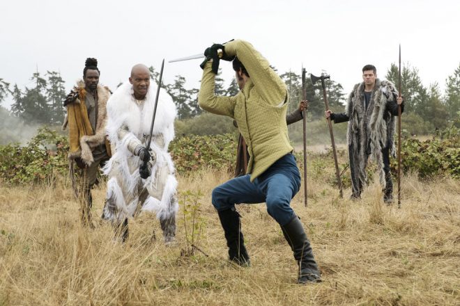 Margo (Summer Bishil) and Eliot (Hale Appleman) are the “least trusted monarchy in the history of Fillory.” Because of Julia’s arbicide, their army is deserting by droves. For Eliot to become the most popular high king ever, he would need to defeat King Idri of Loria (Leonard Roberts) in a duel to the death. Abigail the sloth suggested that choice. The problem is even though Eliot can use magic there is a chance he could still die because of the brown-outs they have been having. Margo cautioned but Eliot decides to proceed with the duel, even though he lacks sword fighting skills. The High Queen becomes even more worried about Eliot’s decision when her intel reports that King Idri has never lost any of his 14 duels. With barely a day to prepare, Fen (Brittany Curan) gives him a sword crafted by her grandfather which includes an incantation that will make him a master swordsman. Well that helps!