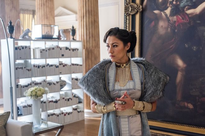 Minerva (Emily Beecham) and Quinn (Martin Csokas) get to work quickly eliminating a few barons. Minerva, who cut off Baron Hasan’s (Alan Wai) head, isn’t at all happy with Quinn’s murder of entire the Broadmore clan. Well women can grow up to be ruthless too right?