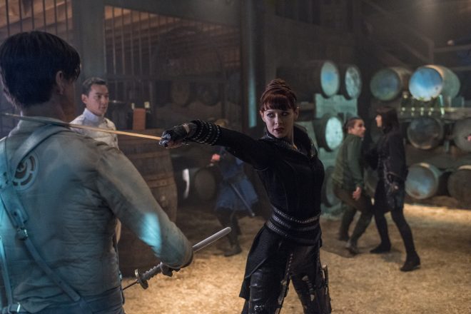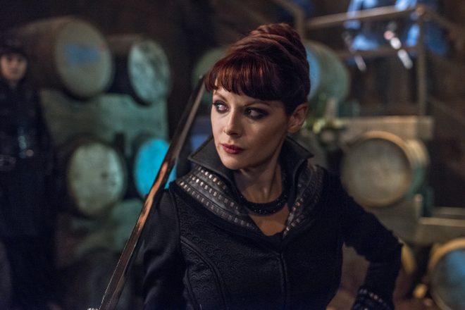 While Quinn and The Widow meet, Tilda (Ally Ioannides) and the other butterflies remain with Quinn’s men. She is surprised to see Veil (Madeleine Mantock) and Lydia (Orla Brady) in the hideout. She was not aware that Minerva had given Veil to Quinn. Seeds of distrust continue to be sown between Tilda and “Mother” by Veil, even as she acknowledges the mistake of leaving Quill alive.